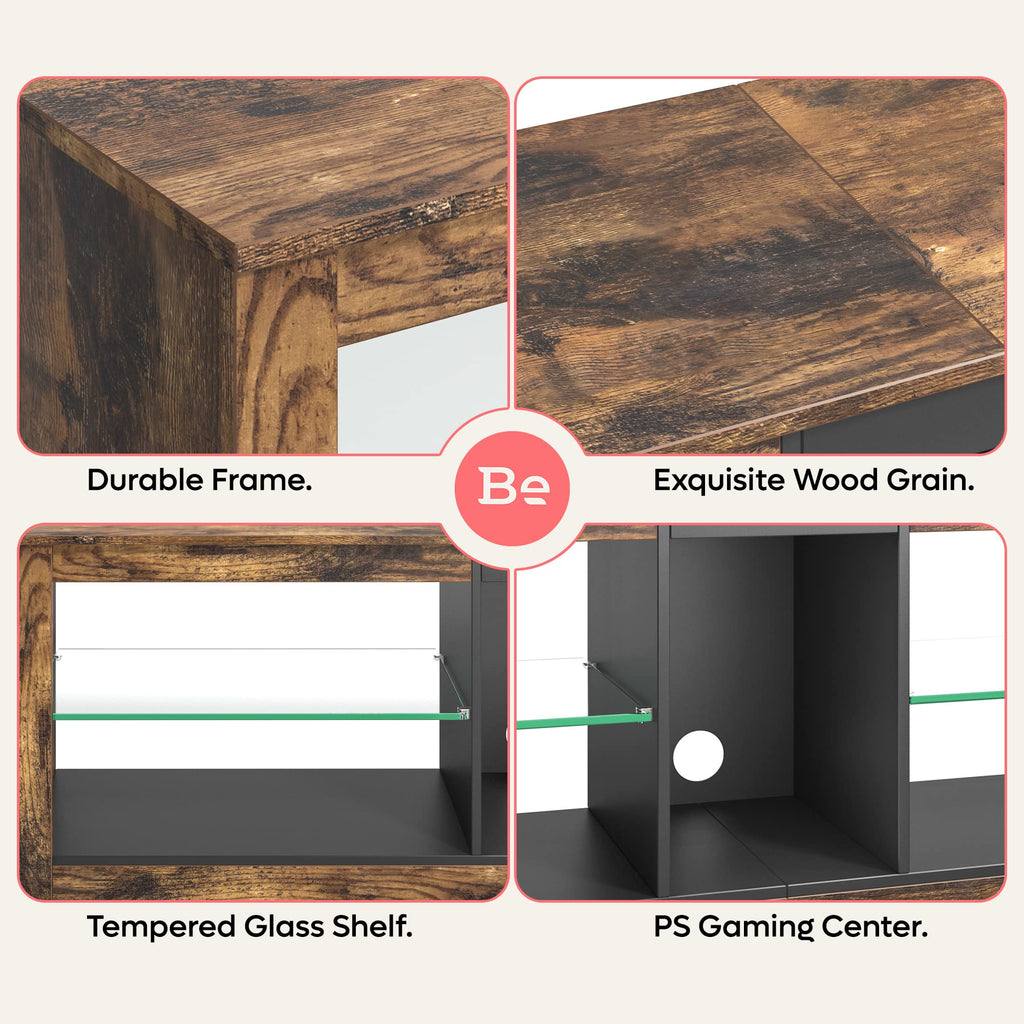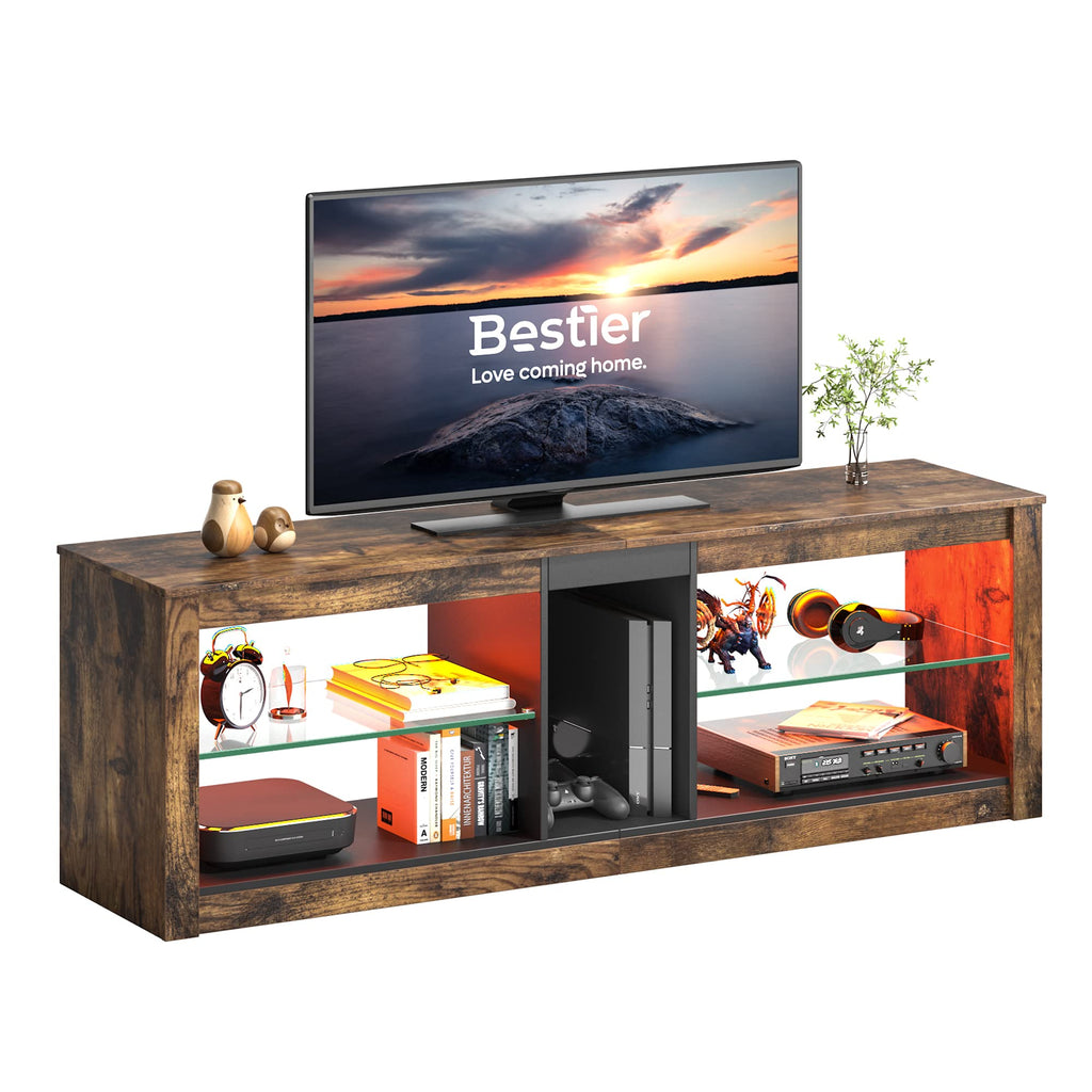 Bestier TV Stand Cabinet 140CM Entertainment Center Led Tv Stand Modern TV Unit with Glass Shelf RGB LED Lighted for 55 inch TVs with Ambient Lights for Living Room Bedroom (Rustic Brown)