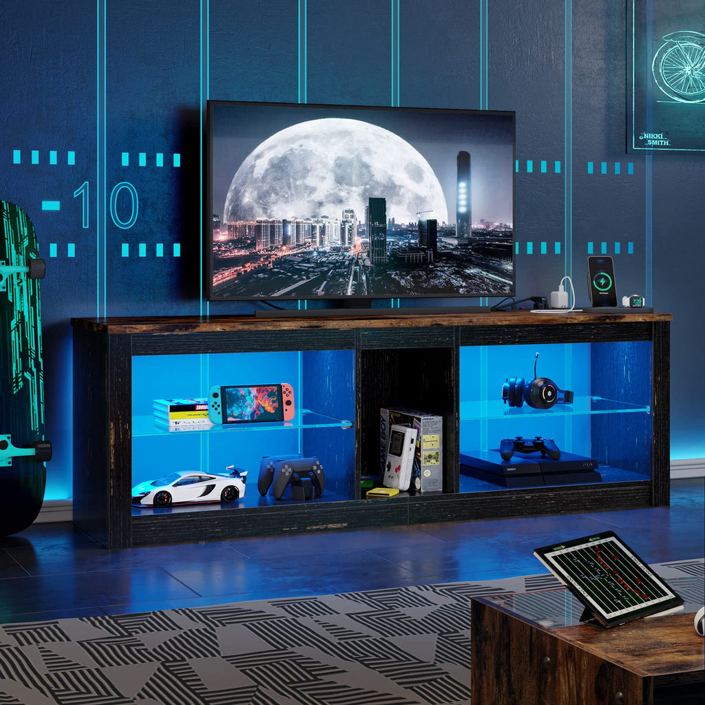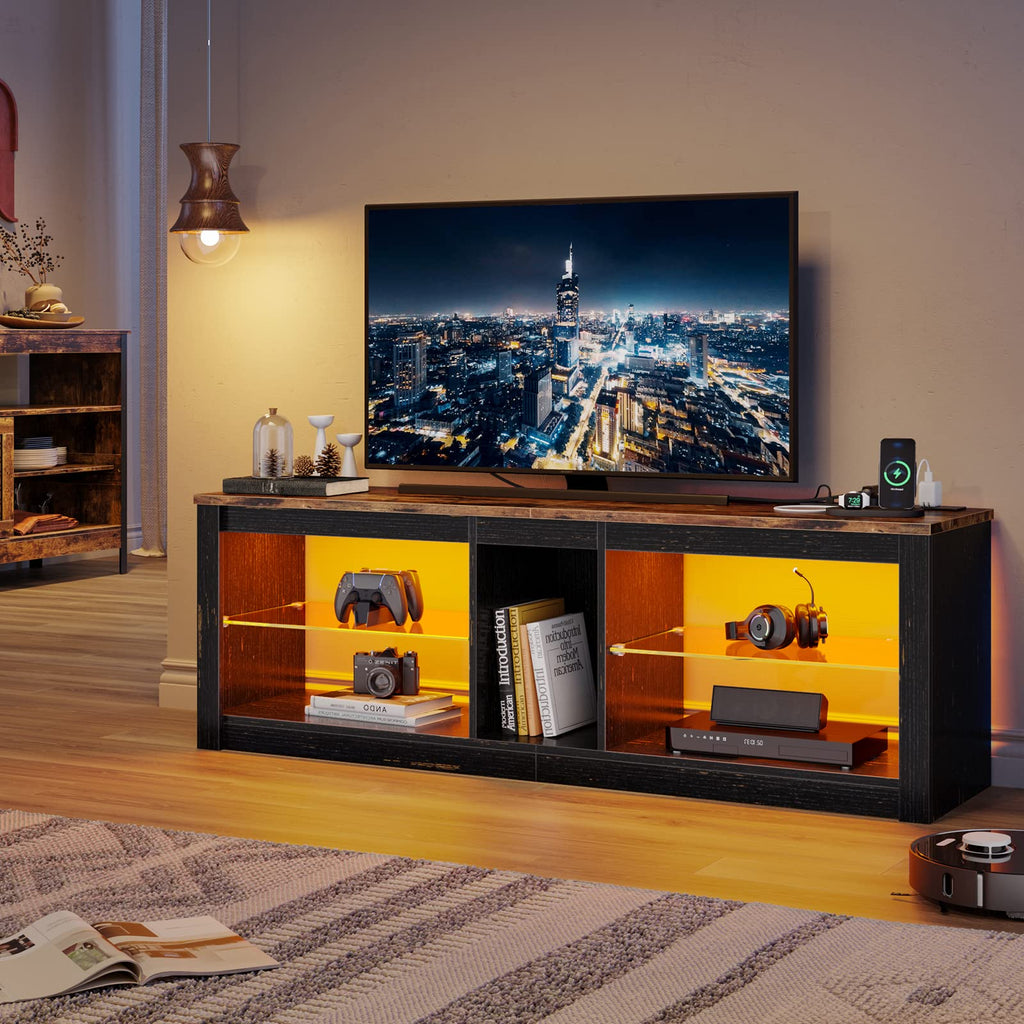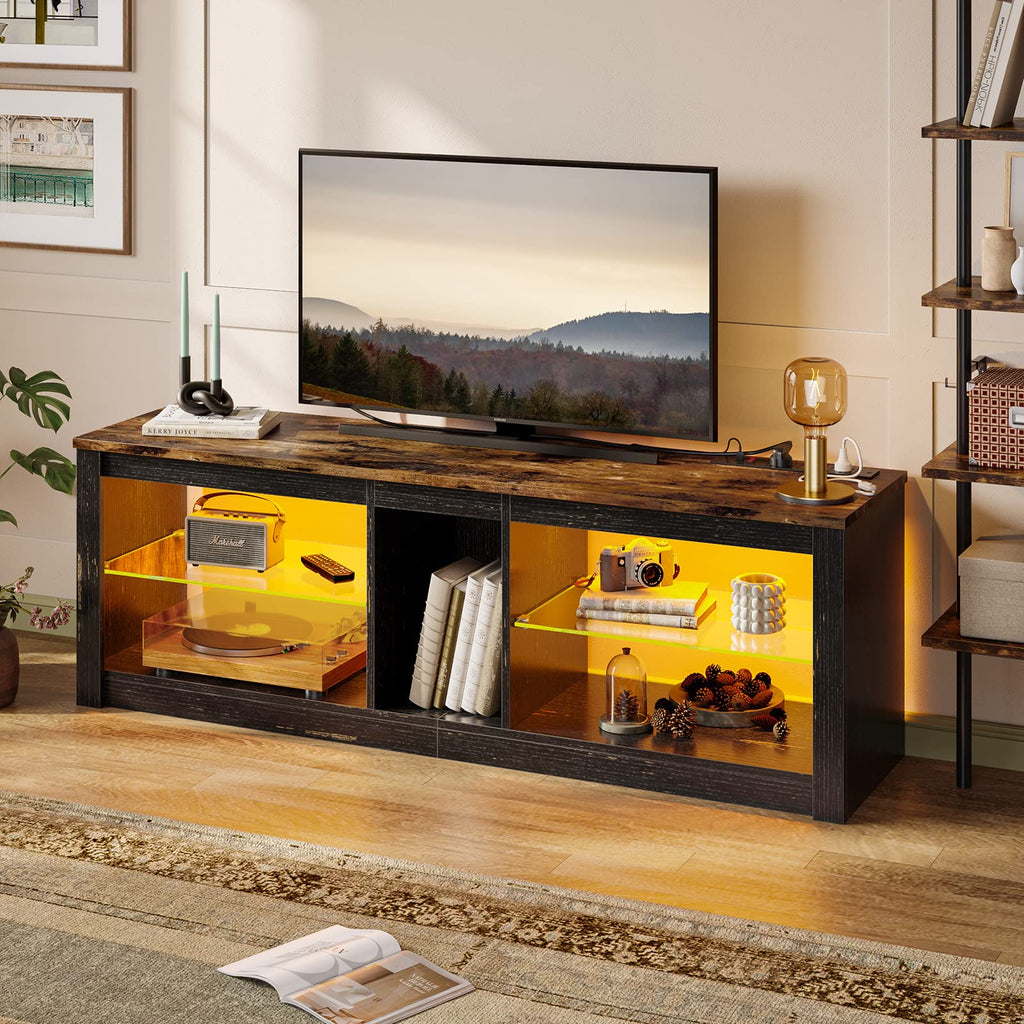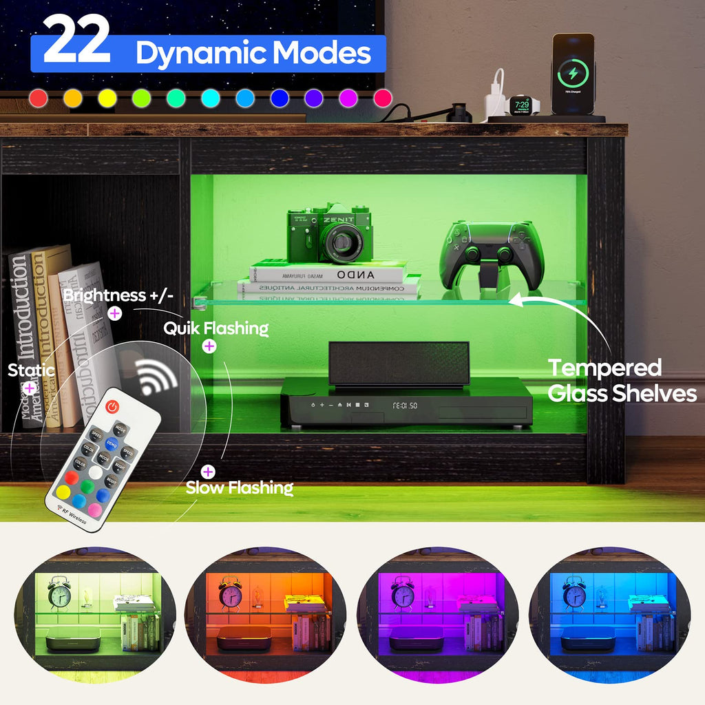• LED TV Stand Cabinet:LED Ambient lights with 7 main colors and 22 flashing modes, with remote ON/OFF and color control, create wonderful atmosphere