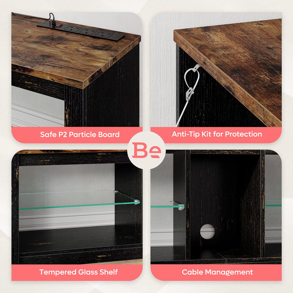 • High-quality Materials:Made of CARB certified P2 particle board, the TV cabinet has great stability and durability, with total weight capacity 200 lbs