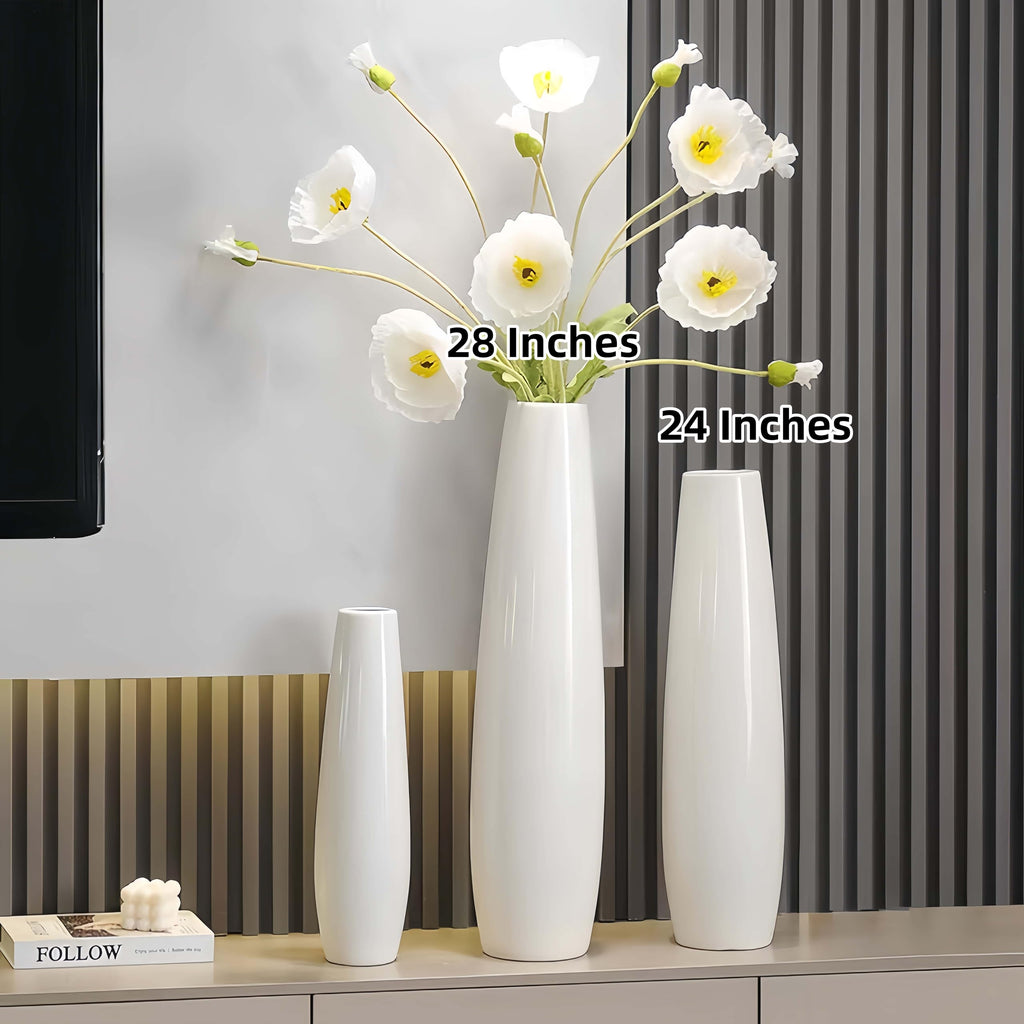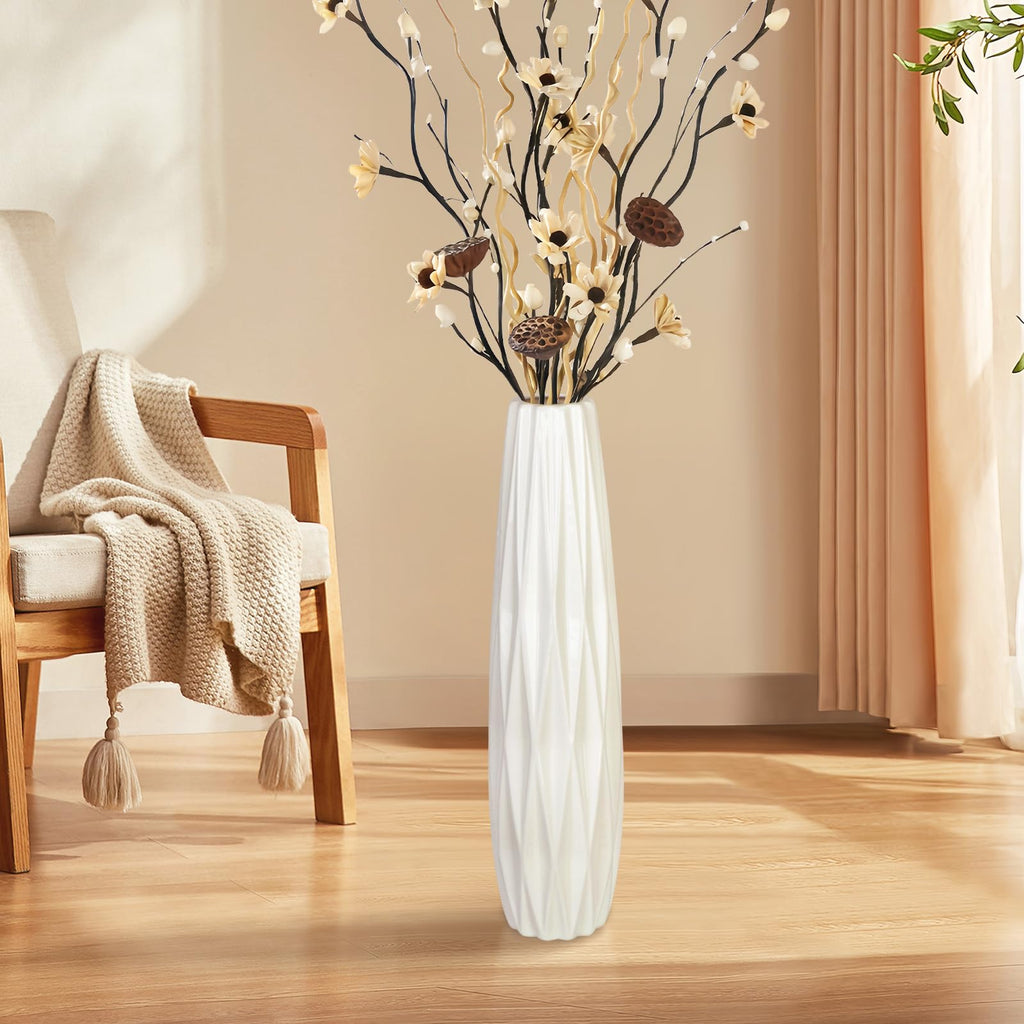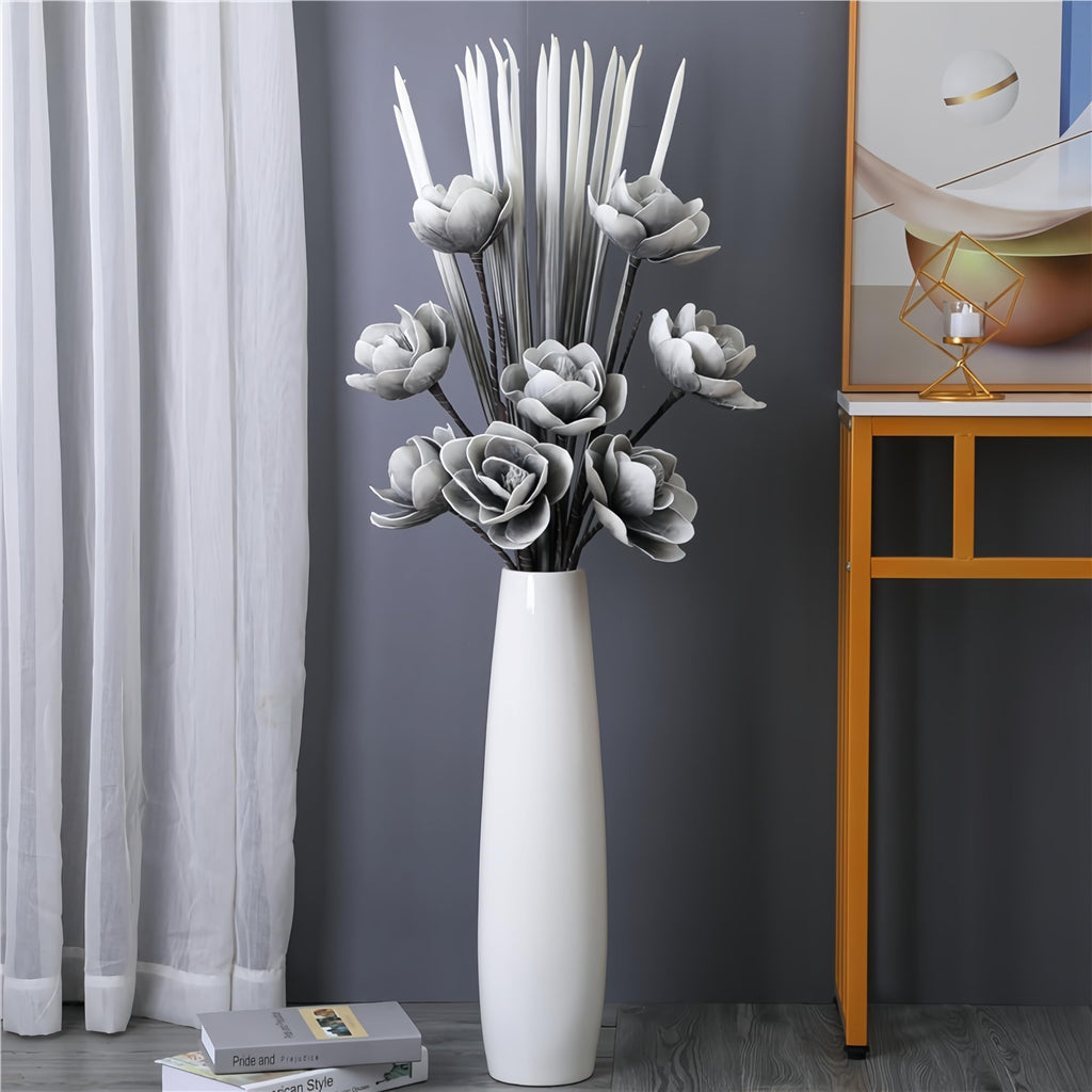 - Premium Ceramic Construction for Durability:Crafted from high-quality ceramic, this tall white vase is built to last. The crack-resistant material ensures it remains intact even after years of use. The glossy finish provides a smooth, lustrous surface that is easy to clean and maintain.