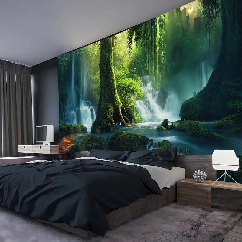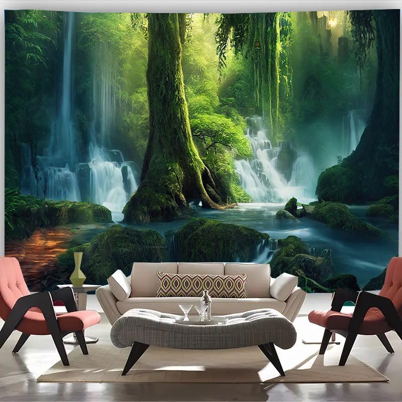 - ★AMAZING MATERIAL:Nature forest Waterfall Tapestry is made of 100% polyester fabric,art digital printing , no fading, suitable for both indoor and outdoor use.