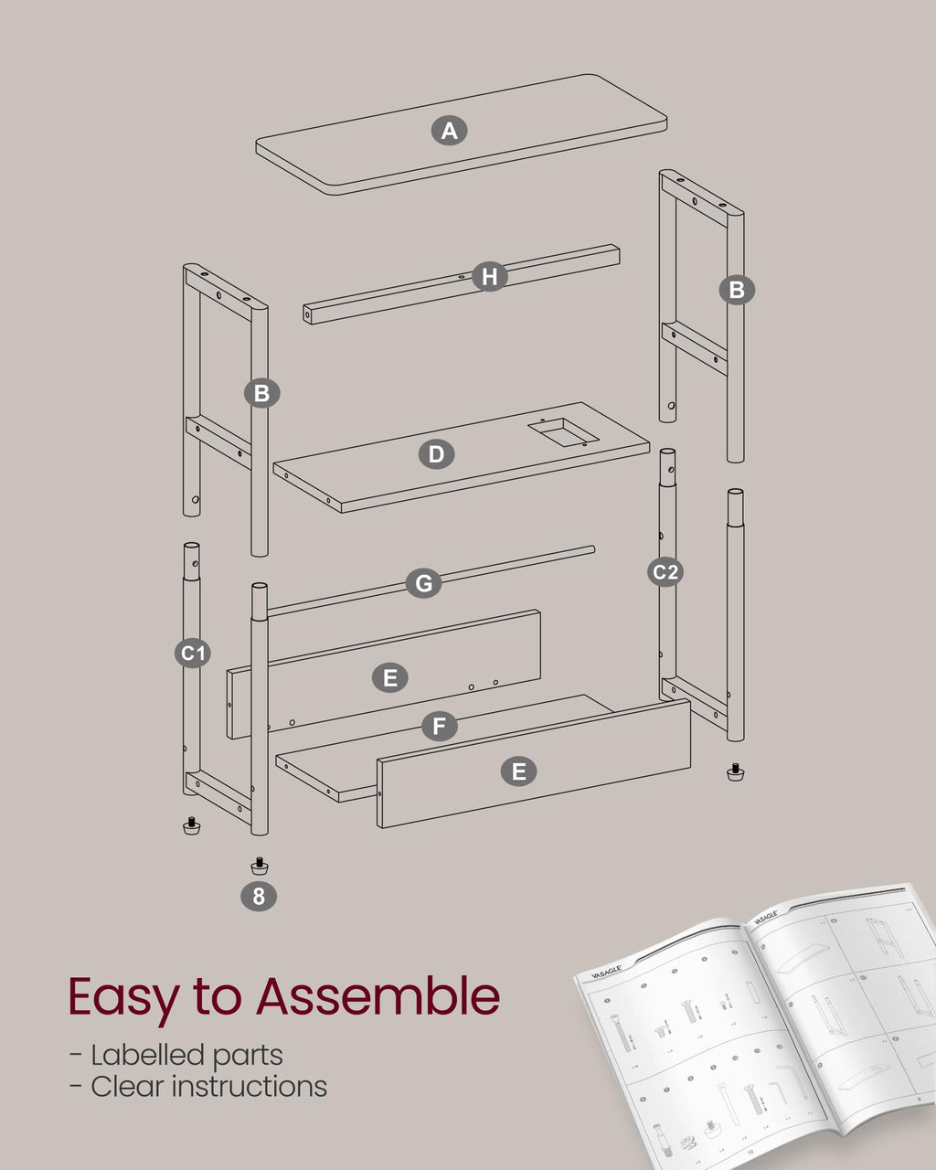 - [Quick and Simple Assembly] Thanks to its labelled parts and clear instructions, assembling this end table is a piece of cake. You'll be able to enjoy this practical and stylish sofa table in a matter of minutes