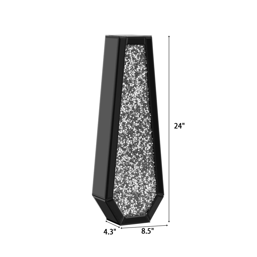 SHYFOY Large Tall Floor Vase, 76cm Indoor Modern Tall Vases Silver with Crystal Diamond and Mirror Design for Living Room Floor Decoration, Black