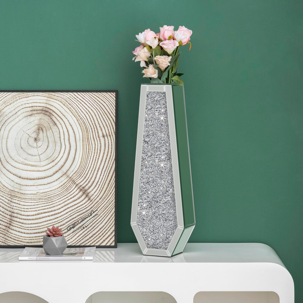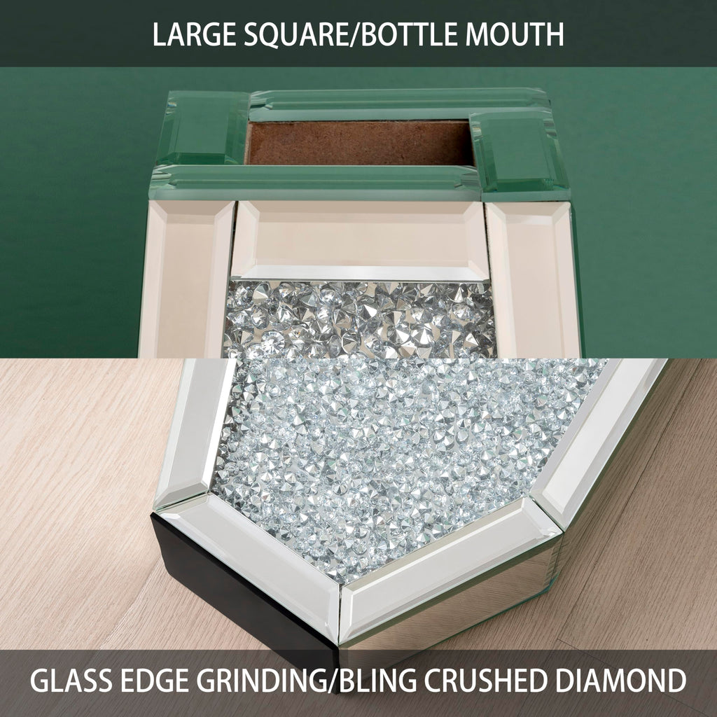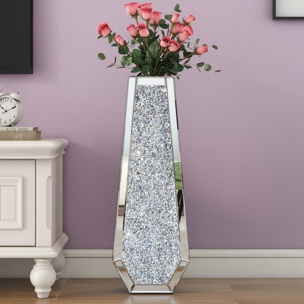 • SOPHISTICATED AND LUXURIOUS DESIGN ‒ This tall silver floor vase is inlaid with crystal crushed diamond on the front and covered by a high-definition eco-friendly mirror on the back. Shiny mirror tall vase, gorgeous appearance can blend with anywhere, which will add more vigor and sophistication to your room
