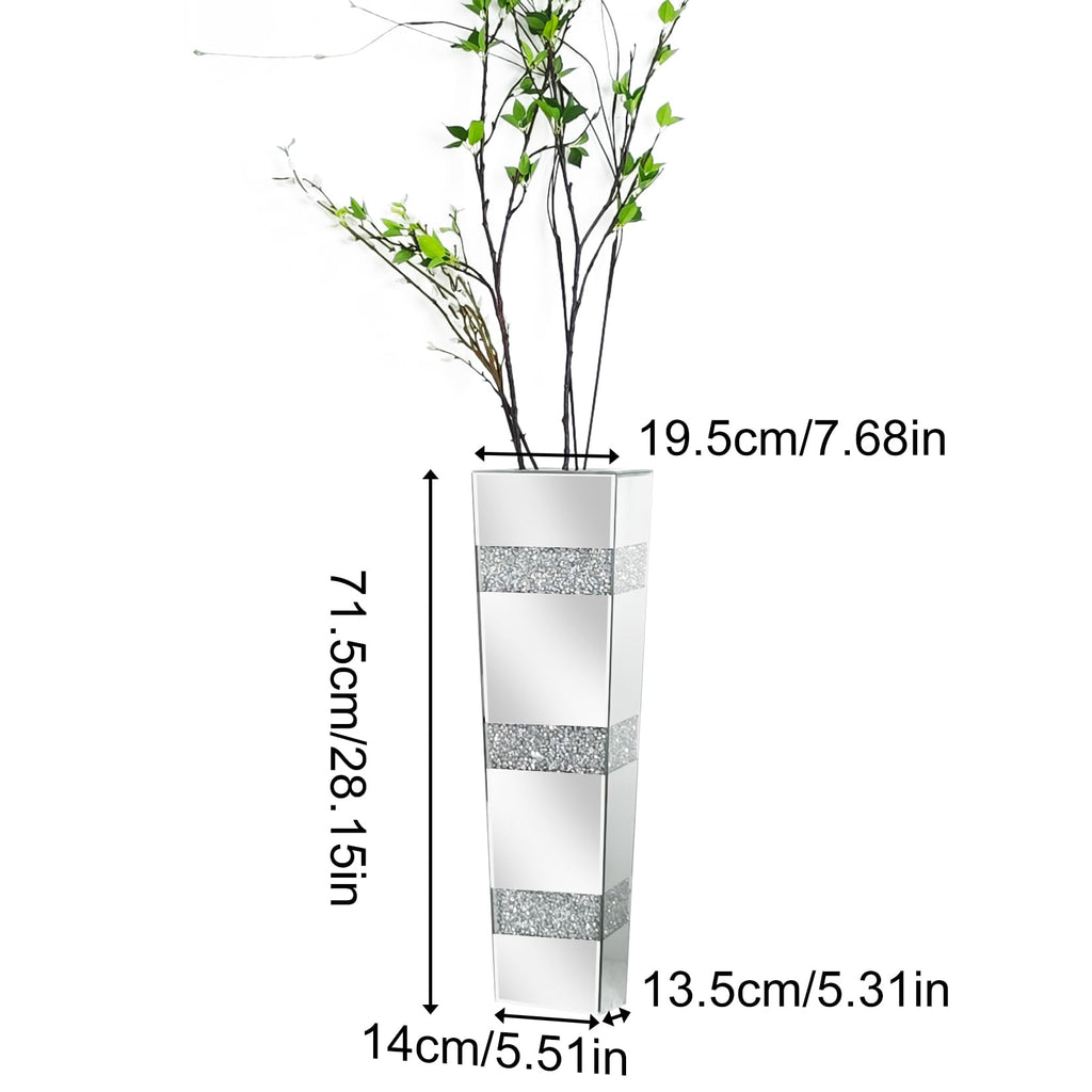 - Anti - slip Structure and Durability - Bling crystal floor vase , The built - in foot pads at the bottom prevent scratching and slipping , Built with reinforced MDF + tempered glass, these tall crushed diamond floor vase won’t tip over,it is not easy to tip over and is resistant to deformation during long - term use